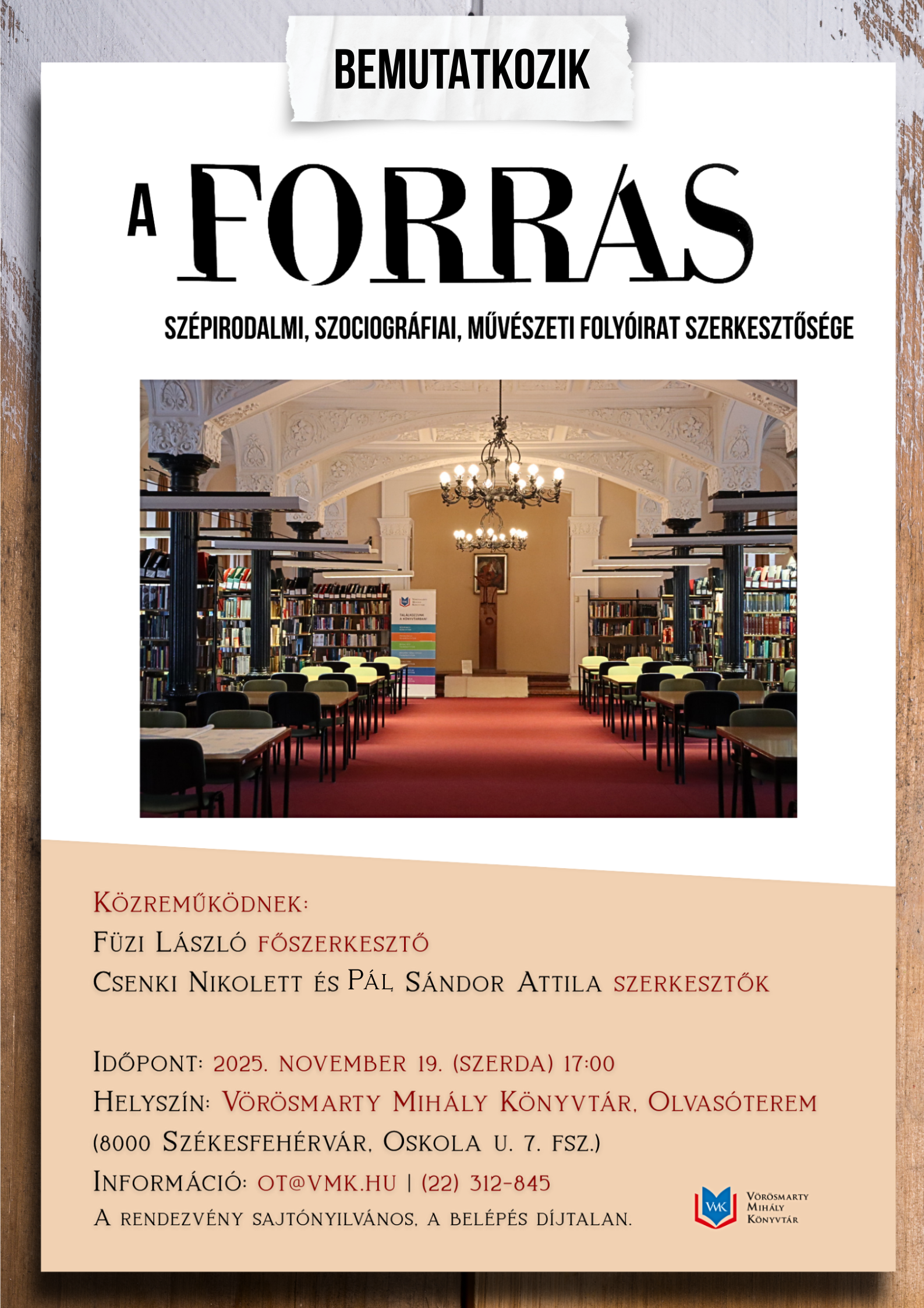 A tavaly rendkívül nagy sikernek örvendő helyi fotópályázat után 2025-ben a versek és a prózai írások felé fordulunk. A pályázat azzal a nem titkolt céllal született, hogy a költők és írók lehetőséget kapjanak alkotásuk által a székesfehérvári, a Fejér vármegyei közönség, és a VMK lelkes olvasótábora előtt bemutatkozni.