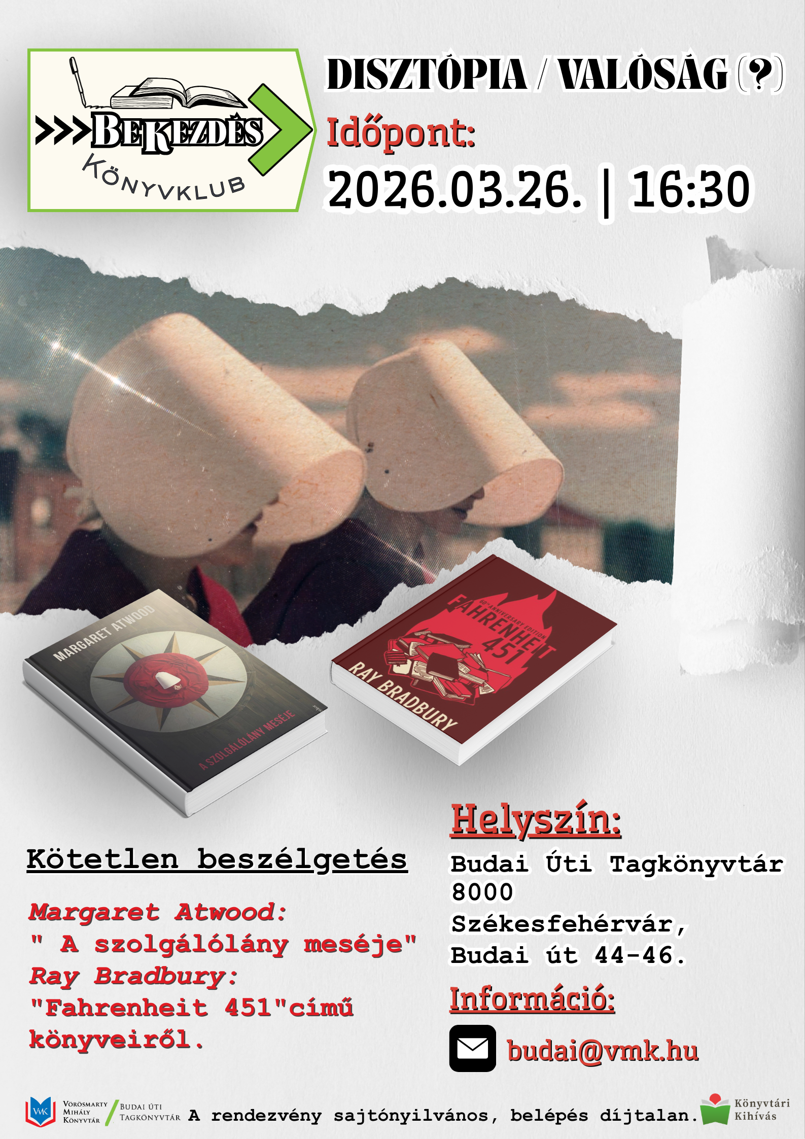 Együtt gondolkodás a műfaj kultuszkönyve, Orwell: 1984 és Sandra Newman: Julia című remakejével a fókuszban. Kötetlen beszélgetés könyvekről, tapasztalatokról, az elképzelt világ és valóság viszonyáról.