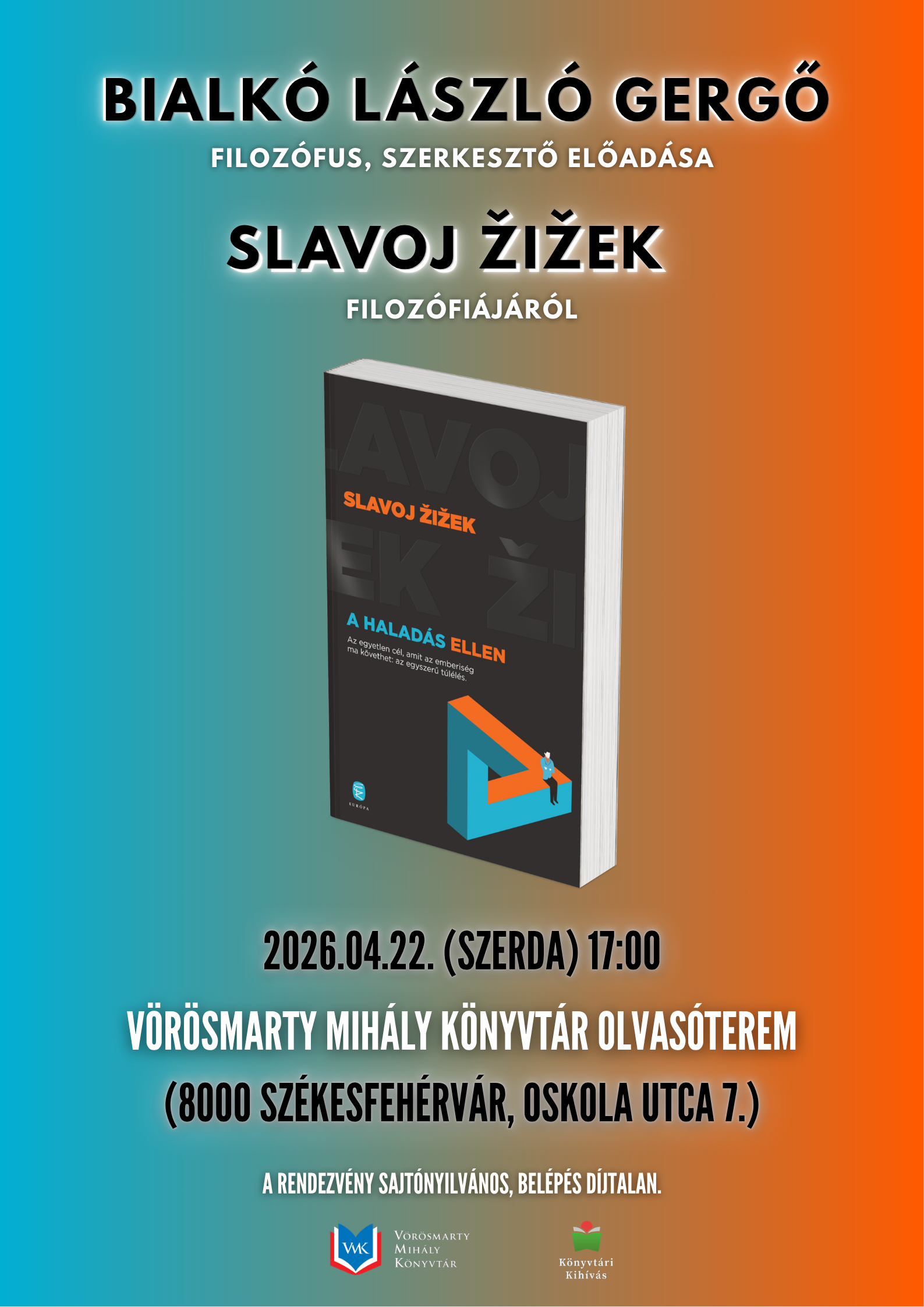 Szeretettel várunk mindenkit Bialkó László Gergő előadására Slavoj Žižek filozófiájáról a Központi Könyvtár Olvasótermében.
